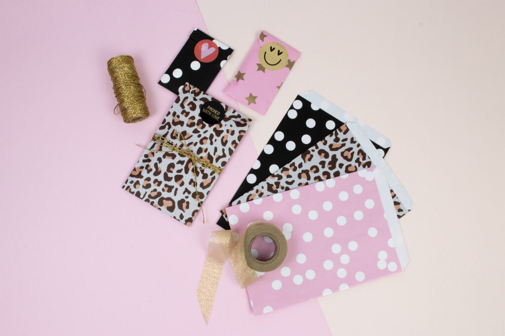 Snoepzakje, brillendoek, flesje, pen, tafelkaarten, groeipapier, bedank kaart